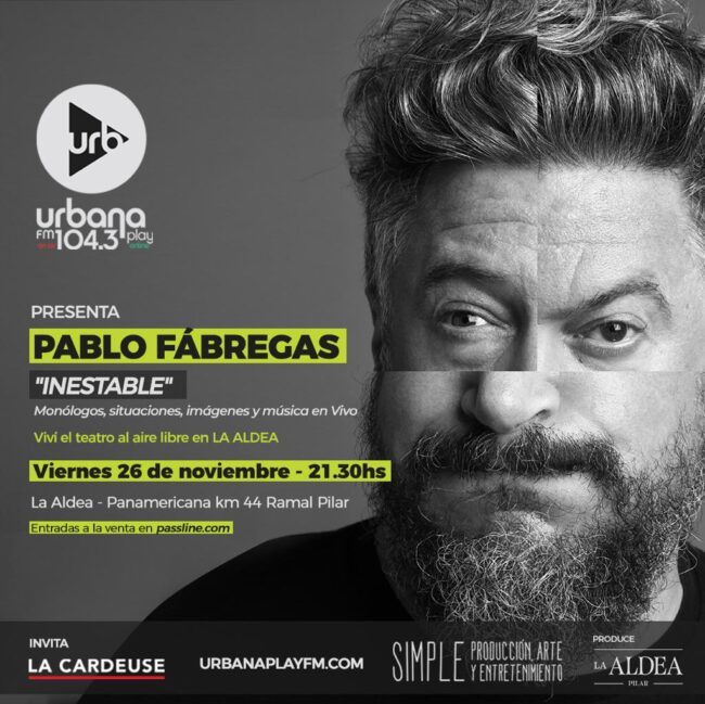 El próximo viernes 26 a las 21:30hs PABLO FÁBREGAS Presenta INESTABLE en @aldeapilar